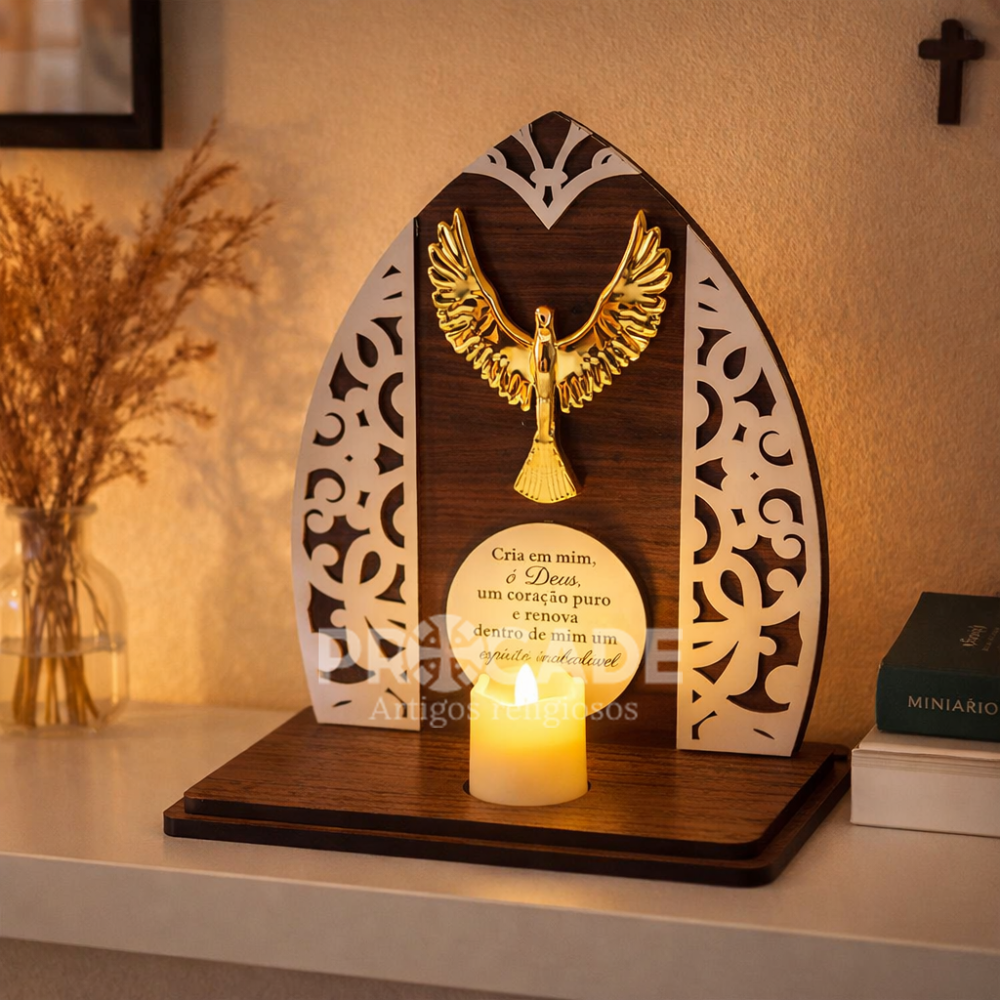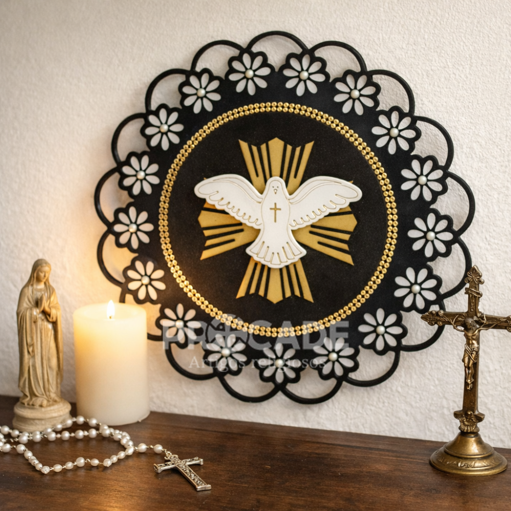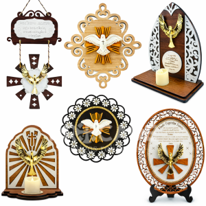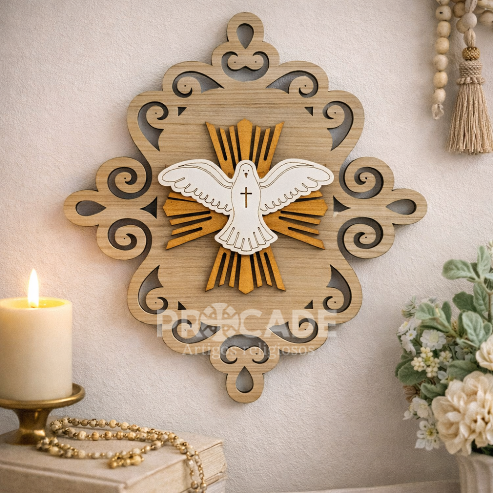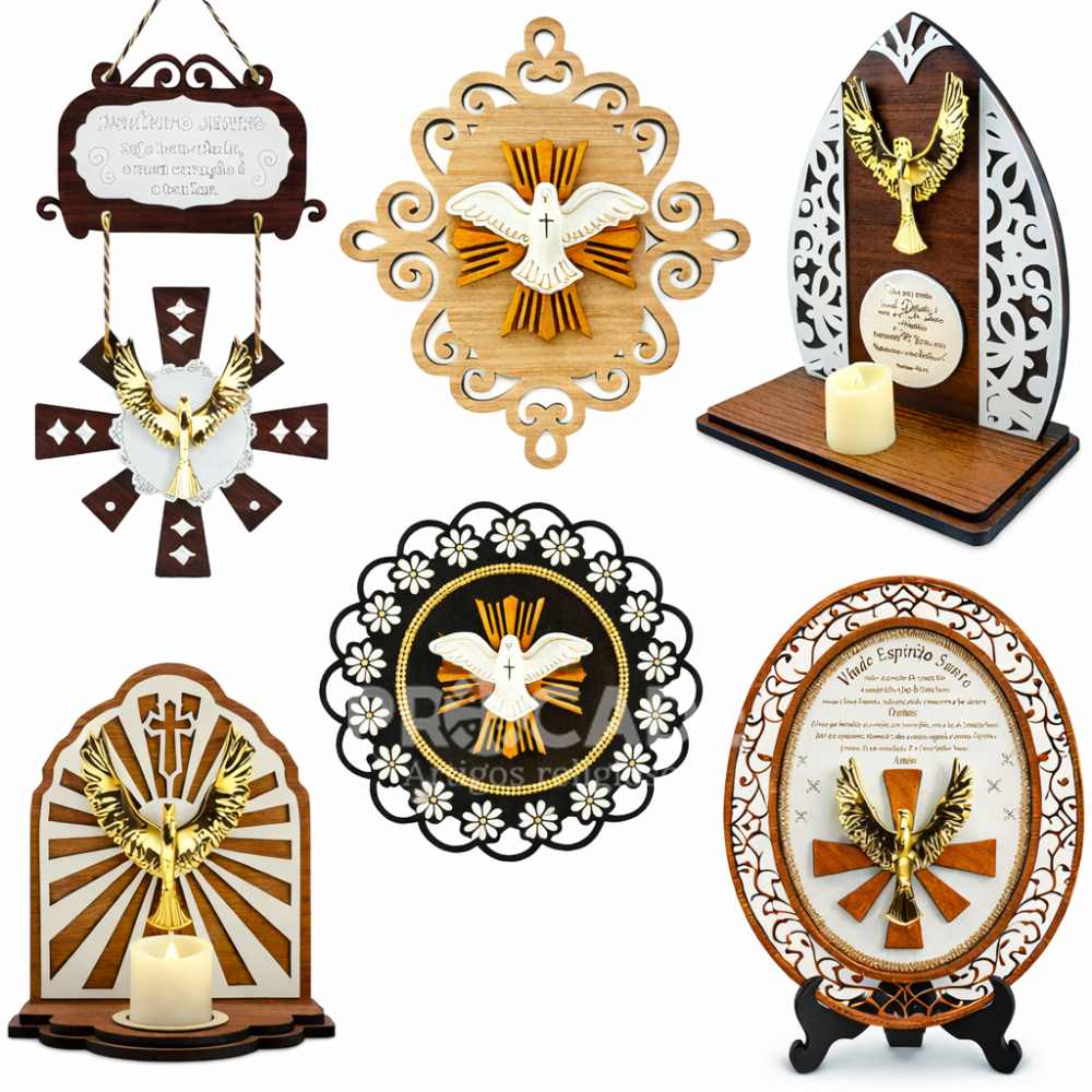Aumente suas vendas com este Kit com 6 peças do Divino Espírito Santo em MDF, desenvolvido especialmente para lojistas que buscam produtos de alto giro no segmento religioso.