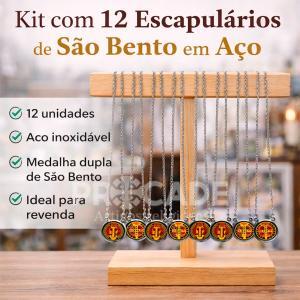 O escapulário de São Bento é muito procurado por seu forte significado espiritual, sendo uma peça tradicional de fé e proteção. Este kit com 12 unidades é uma excelente opção para quem busca praticidade, boa apresentação e ótimo custo-benefício para vendas no varejo.