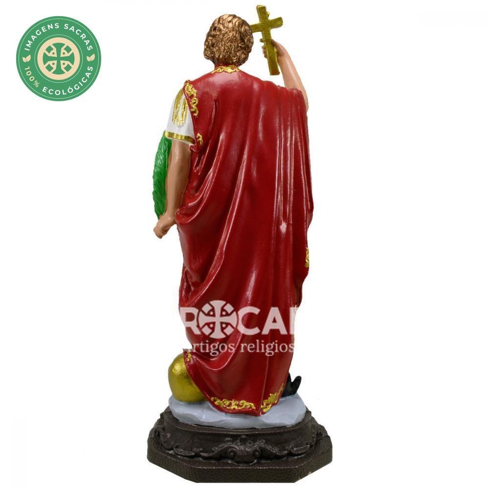 Imagem com 38 cm de altura, ecológica, feita em borracha reciclada, resistente a quedas de qualquer altura, superleve, pintada a mão com tinta especial, podendo ficar exposta ao sol, suportando altas variações de temperaturas, totalmente inquebrável.