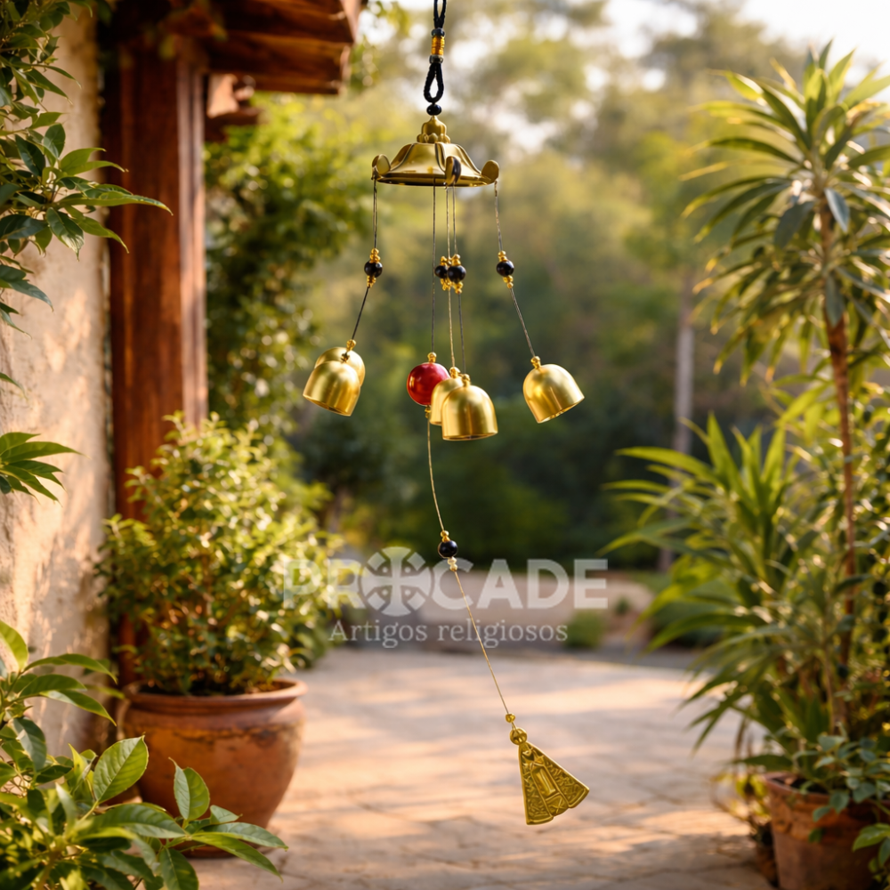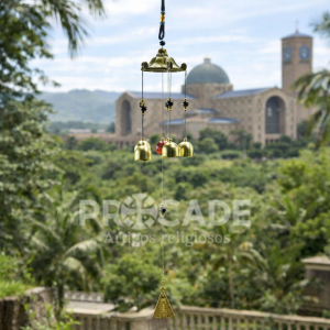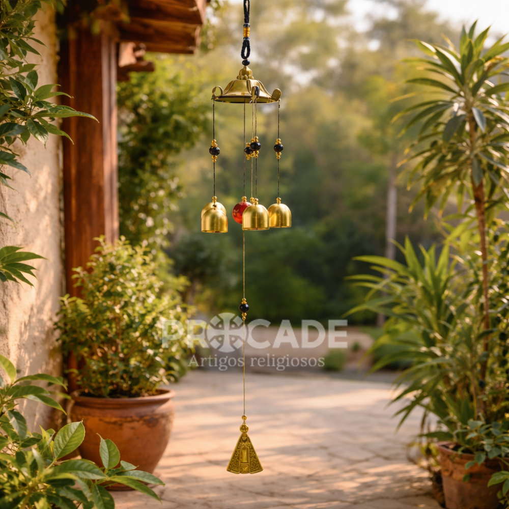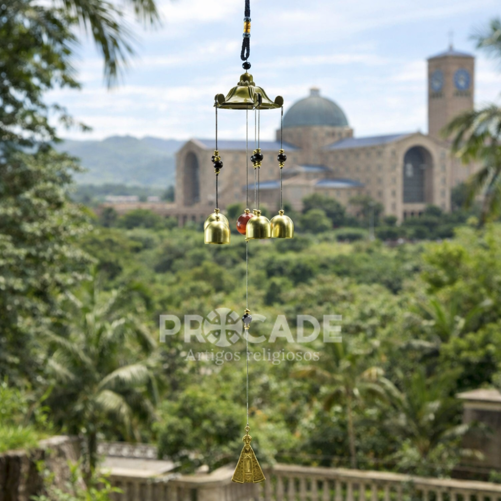 O Sino dos Ventos Nossa Senhora Aparecida com 5 sinos é uma peça decorativa elegante que une fé, beleza e harmonia, ideal para lojistas que buscam produtos com forte apelo comercial.