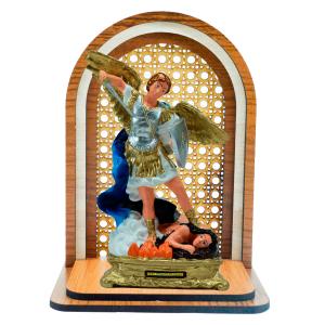Aparador Oratório com São Miguel Arcanjo branco com azul 20 cm.Cód. 6746
