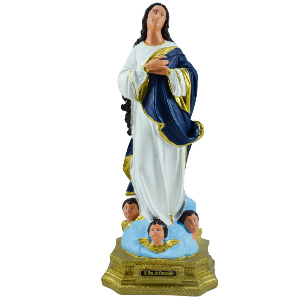 As Imagens são ecológicas com 33 de altura, feitas em borracha reciclada, (pneus, solados, látex ,etc) resistente a quedas de qualquer altura, superleve, pintada a mão com tinta especial, podendo ficar exposta ao sol, suportando altas variações de temperaturas, totalmente inquebrável. Pode ser carregada sem preocupações com quedas e acidentes, crianças de qualquer idade podem ter contato com esta imagem ,um produto 100% ecológico.