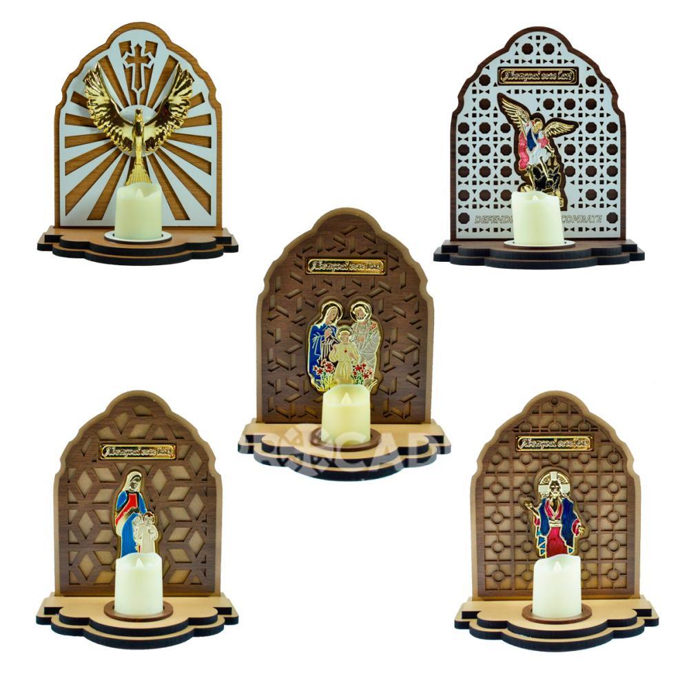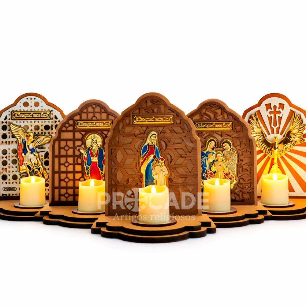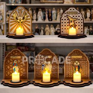 Encante seus clientes com este lindo kit contendo 10 oratórios em MDF, cada um acompanhado de vela eletrônica com efeito de chama realista. Ideal para decoração de ambientes, presentes religiosos ou revenda em lojas de artigos sacros.