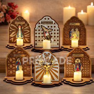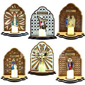 Kit com 6 Oratórios Religiosos em MDF com vela de LED – 6 Modelos DiferentesCód. 6803