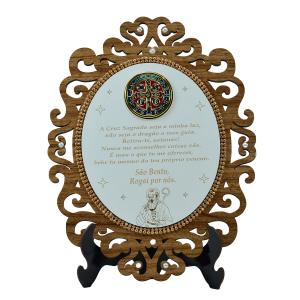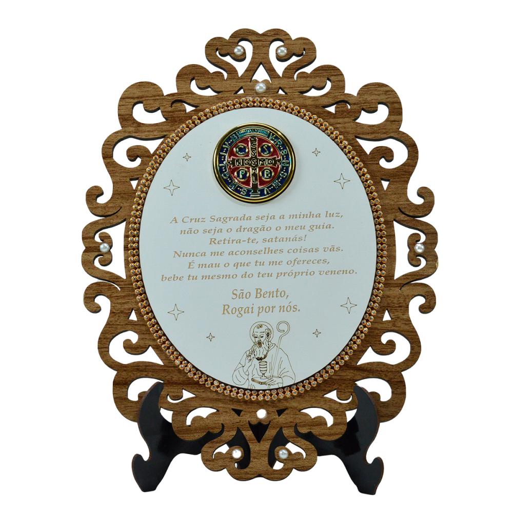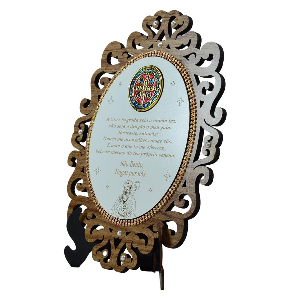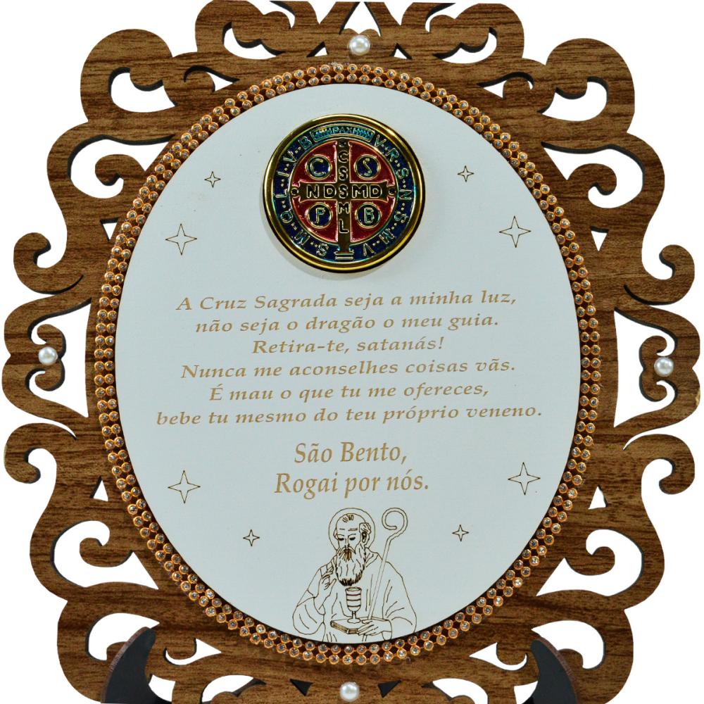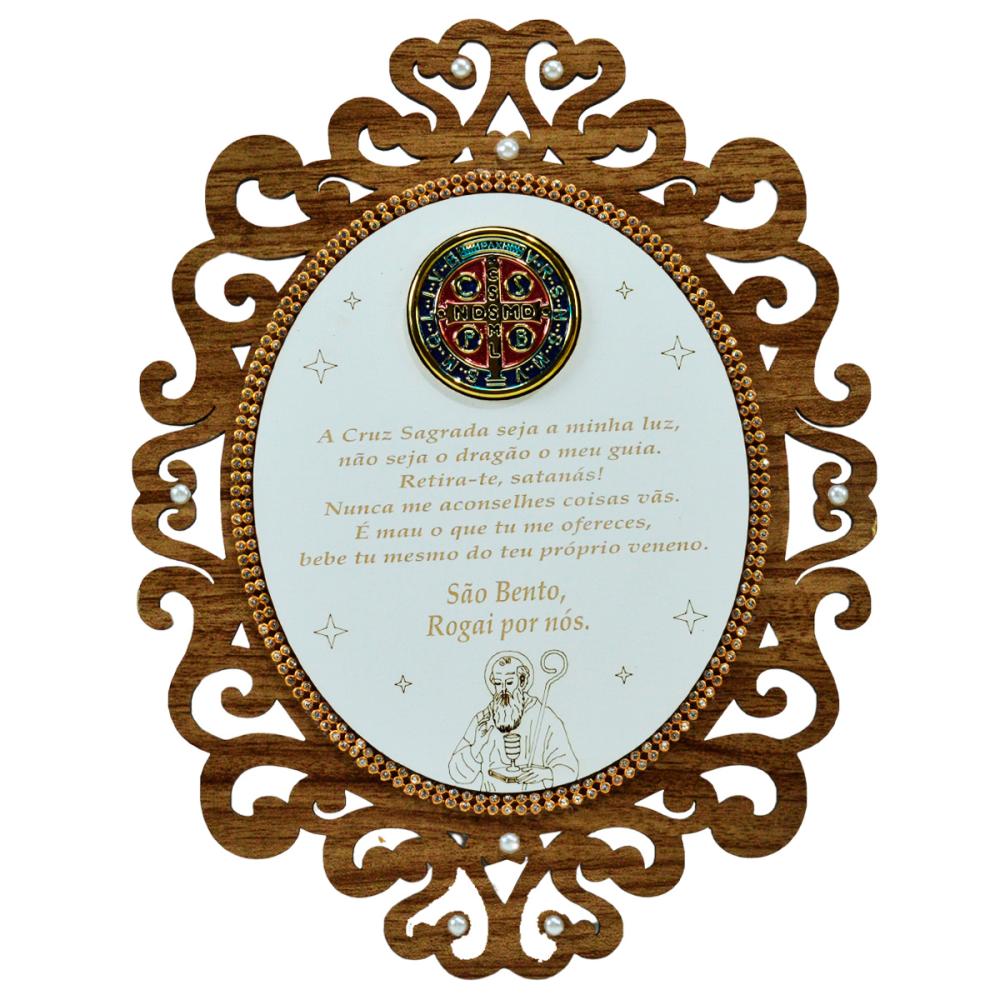Mandala em mdf com detalhes em perola e STRASS e Medalha de São Bento ABStamanho do produto 280 x 220 mm.