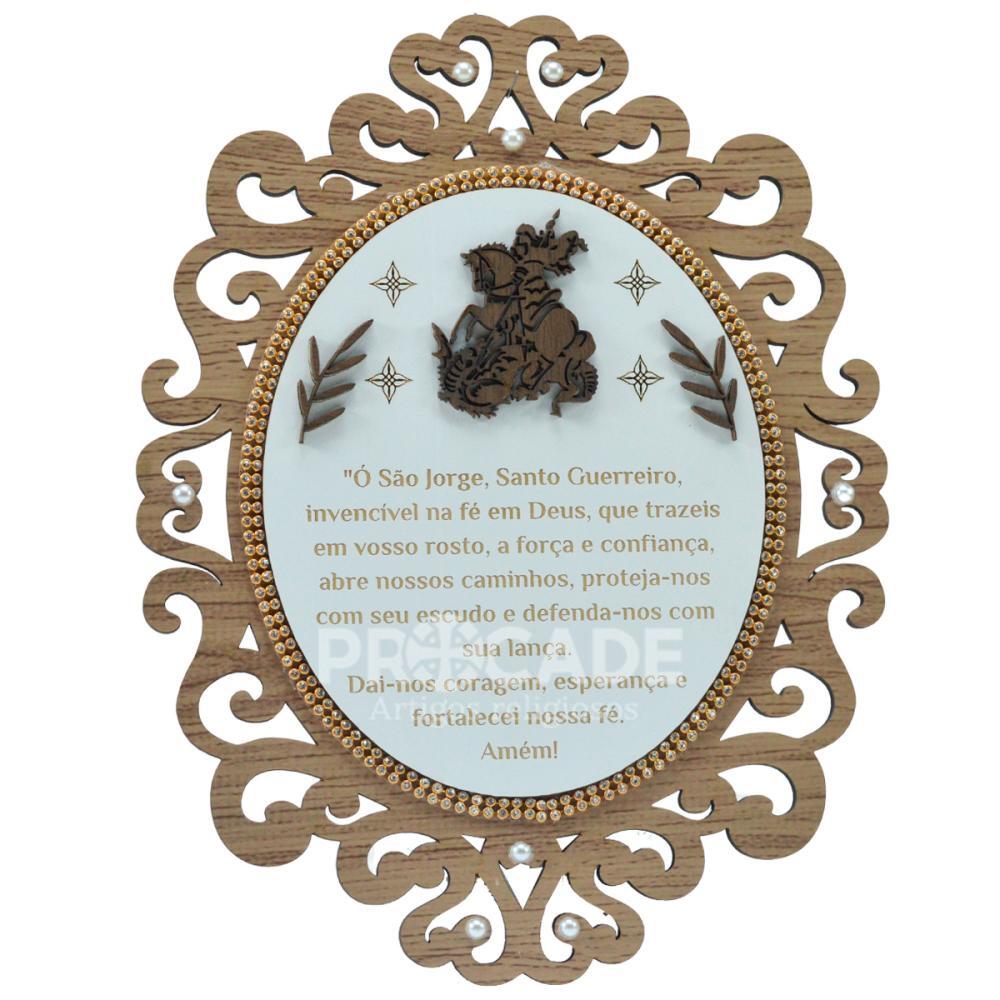 Mandala em mdf com detalhes em perola e imagem de São jorge.tamanho do produto 280 x 220 mm