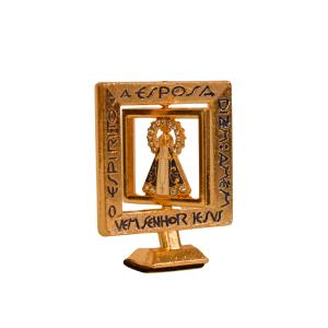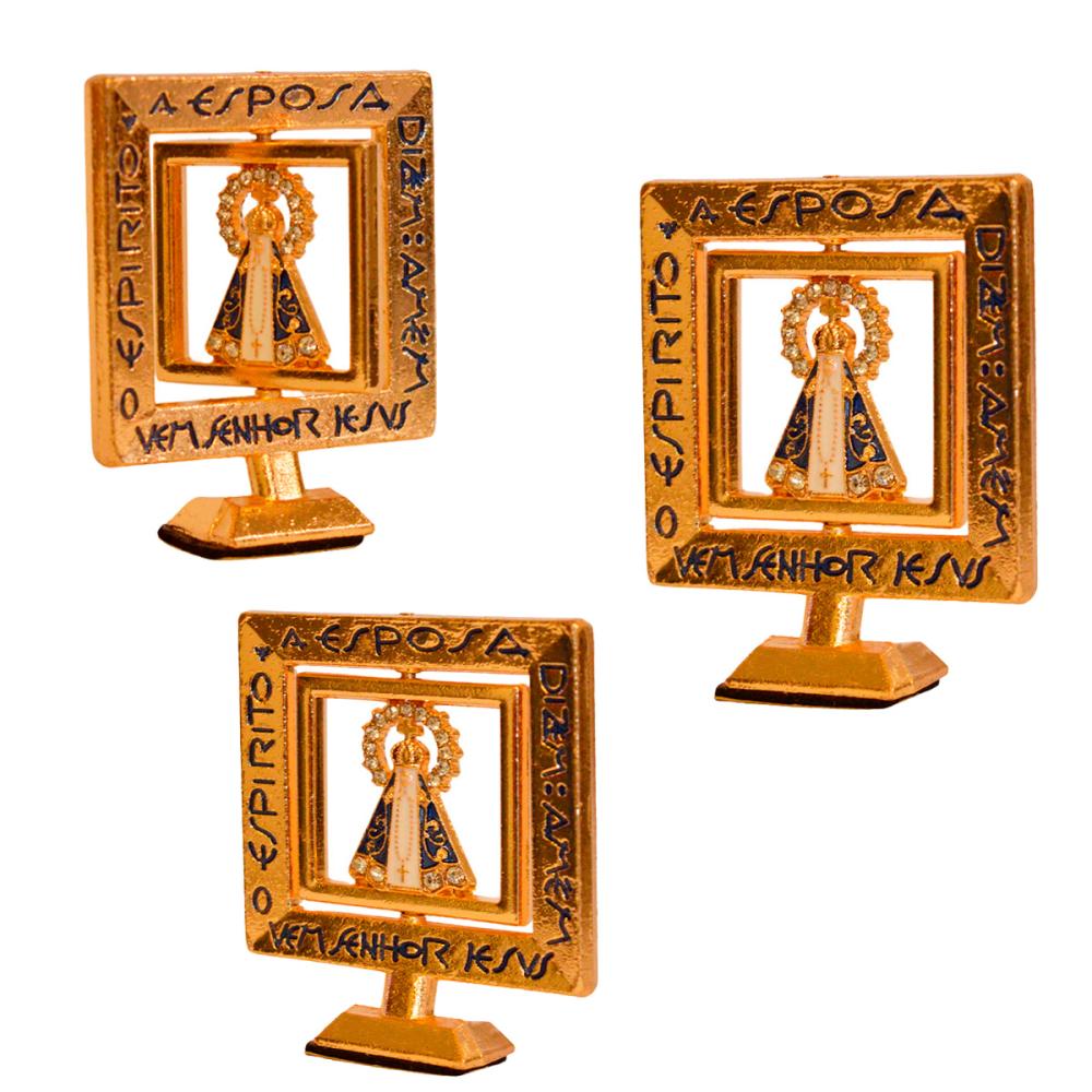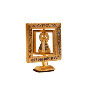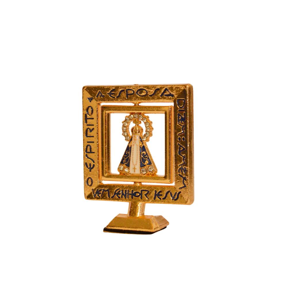 Nicho de nossa senhora Aparecida de metal com centro giratório dupla face com pedras de strass e fita colante em sua base para carros , caminhões e etc.