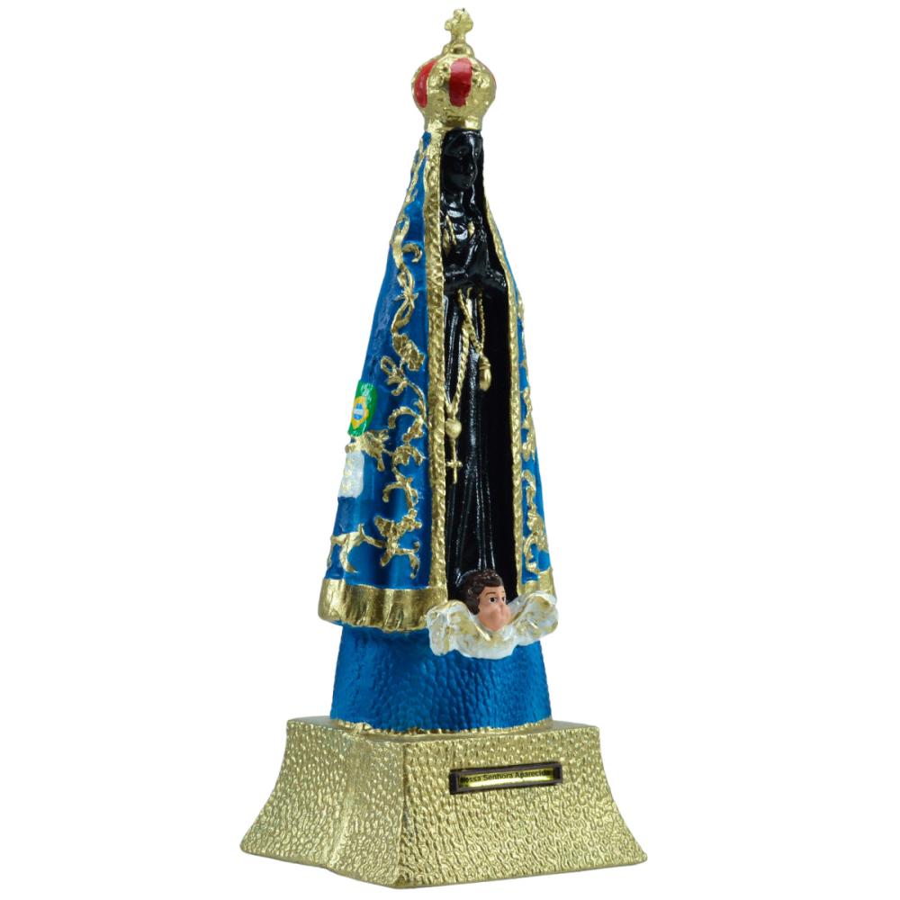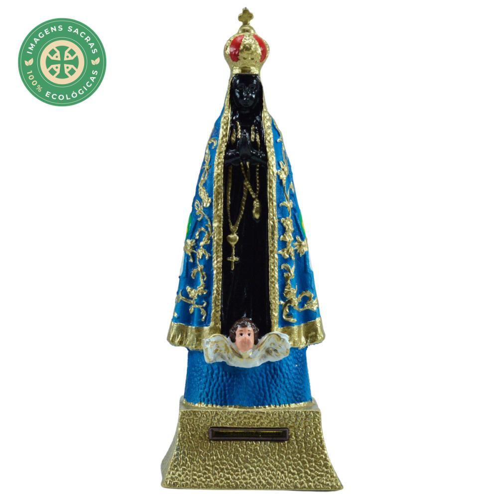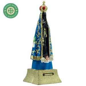 Imagem com 21 cm de altura, ecológica, feita em borracha reciclada, resistente a quedas de qualquer altura, superleve, pintada a mão com tinta especial, podendo ficar exposta ao sol, suportando altas variações de temperaturas, totalmente inquebrável.