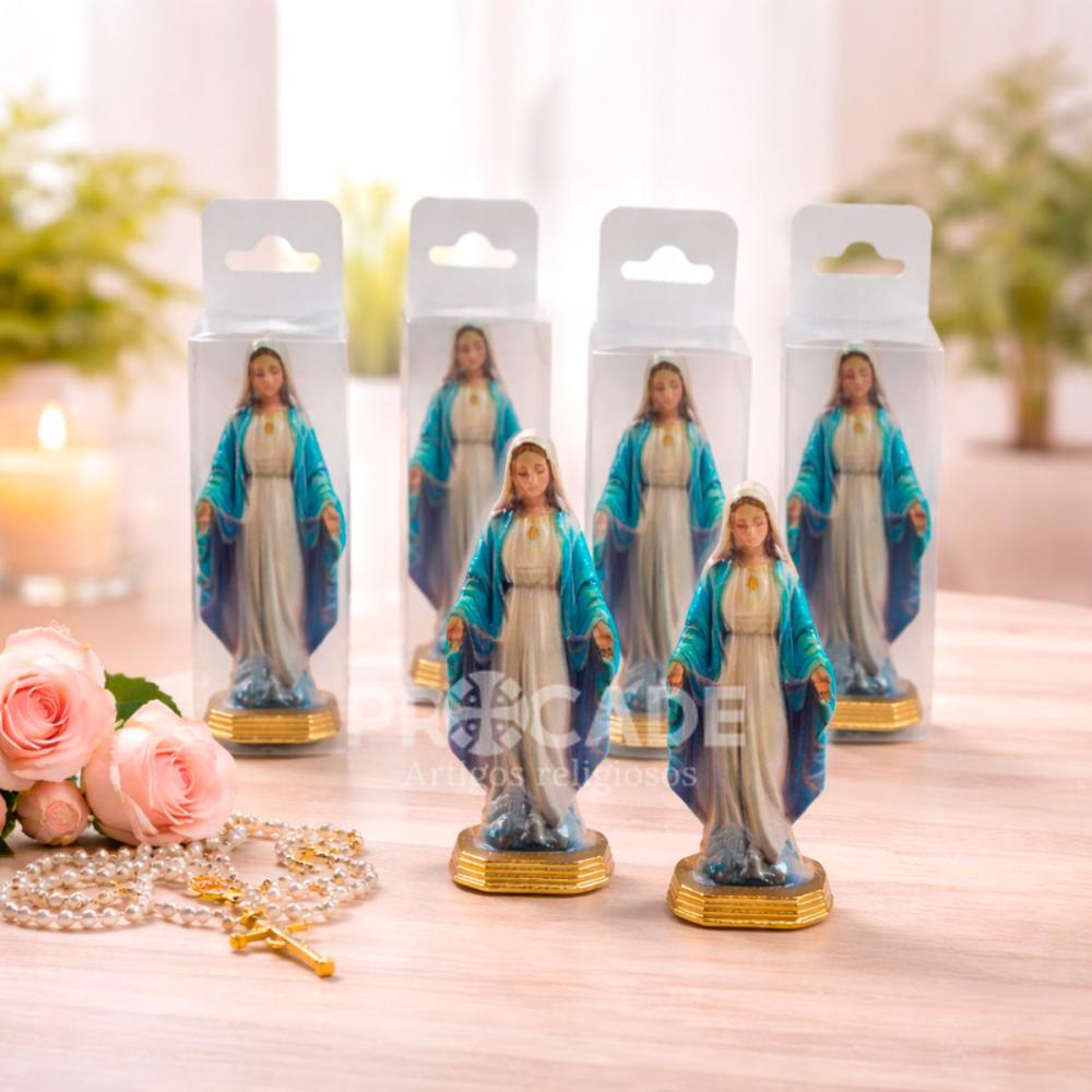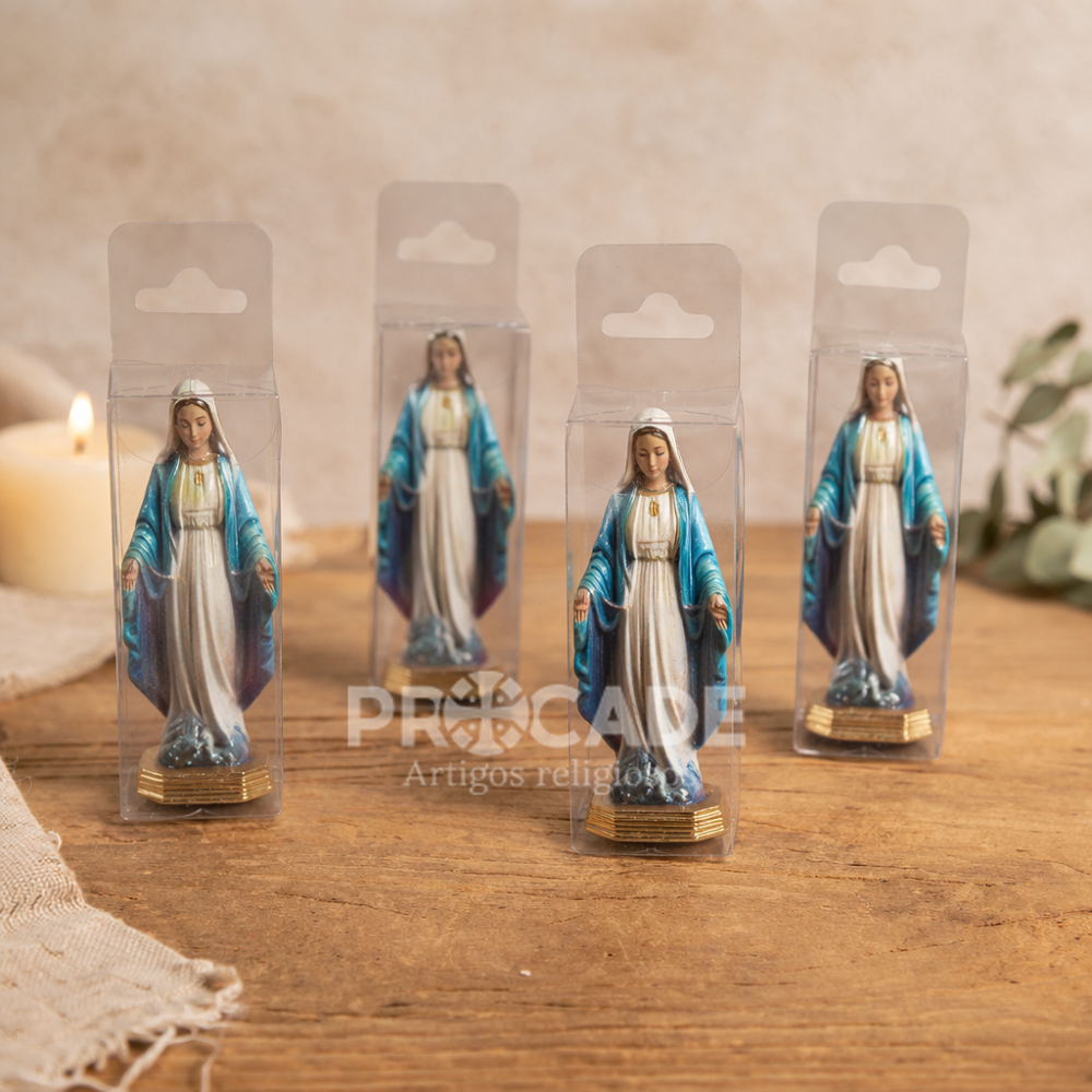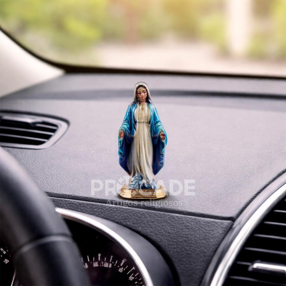 Leve mais proteção, fé e devoção para o seu dia a dia com este kit com 6 mini imagens de Nossa Senhora das Graças em metal, ideal para painel de carro. Com acabamento delicado e visual elegante, cada peça mede 5 cm, sendo perfeita para quem busca um item religioso compacto, resistente e cheio de significado.