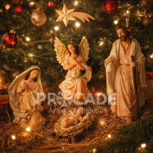 Composto por 5 peças cheias de delicadeza, ele representa a Sagrada Família de forma simples, acolhedora e acessível — ideal para reunir pessoas, fortalecer a fé e criar momentos especiais em comunidade ou em casa.