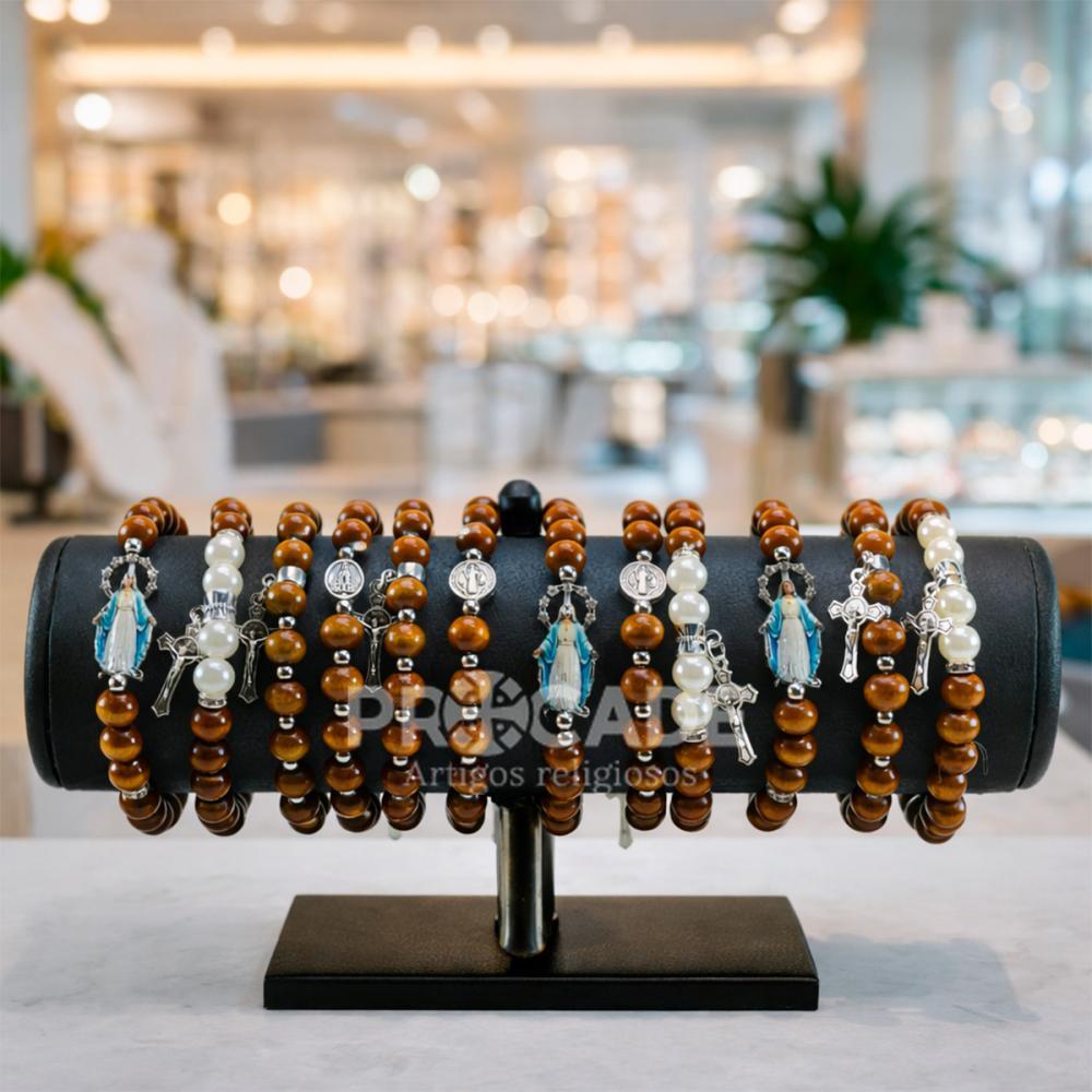 As Pulseiras Marcas da Fé em Madeira são acessórios religiosos desenvolvidos para unir devoção, beleza e significado em um só produto. Produzidas com contas de madeira e detalhes religiosos delicados, elas apresentam modelos variados que combinam com diferentes estilos e ocasiões.