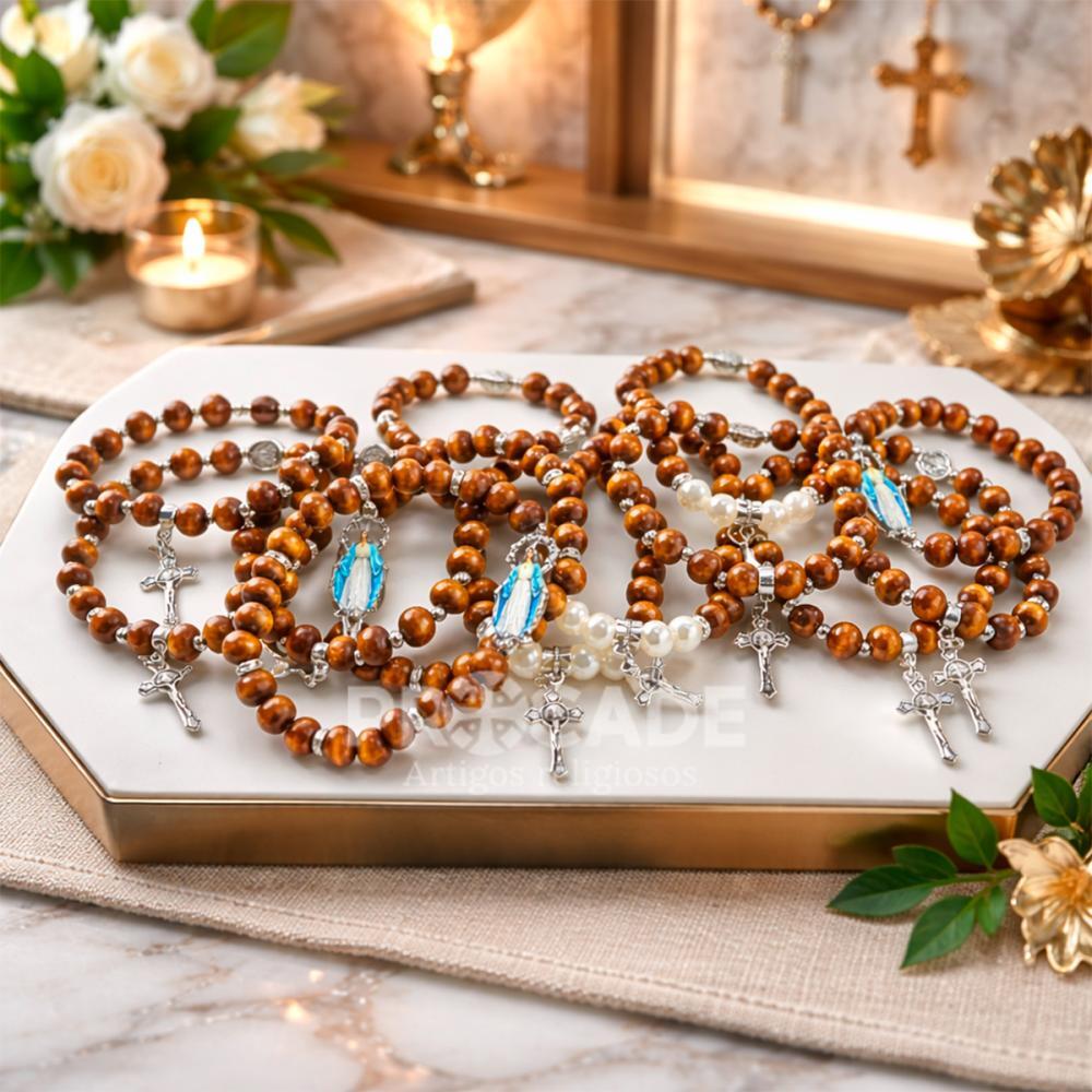 Ideais para uso pessoal, lembranças religiosas, presentes especiais e revenda, essas pulseiras transmitem fé e elegância em cada detalhe. Seu acabamento valoriza o visual artesanal, tornando cada peça uma opção encantadora para quem busca um acessório com identidade cristã.