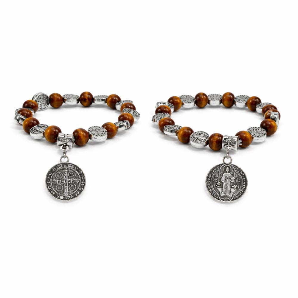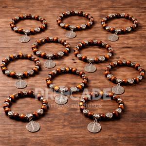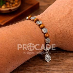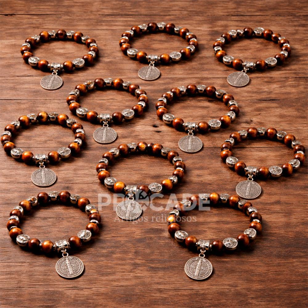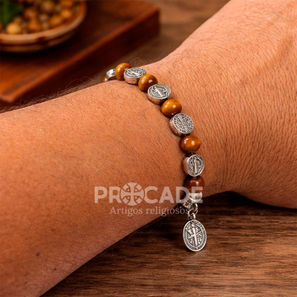 Com design marcante e acabamento elegante, o Kit com 12 Pulseiras São Bento combina contas em tons amadeirados com medalhas prateadas que valorizam ainda mais cada peça. Um acessório que transmite fé, proteção e estilo em uma composição refinada.