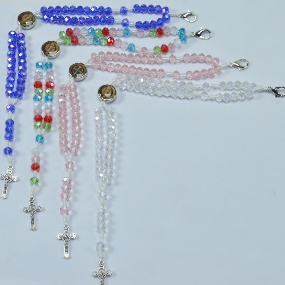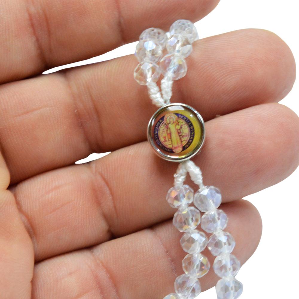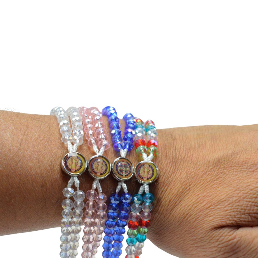 Terço de Pulso Cristal com Fecho e Medalha de São Bento Resinada cores variadas. (12 UN)