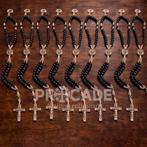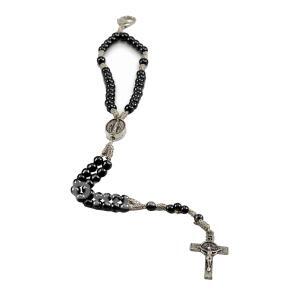 Produzido com contas pretas de hematita, acabamento elegante e detalhes metálicos, este terço une beleza, fé e delicadeza em uma peça prática para o dia a dia.