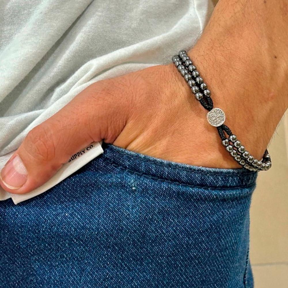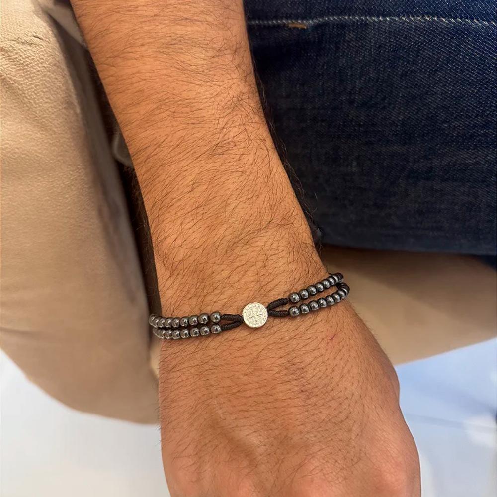 TERÇO DE PULSO SÃO BENTO HEMATITA NATURAL.