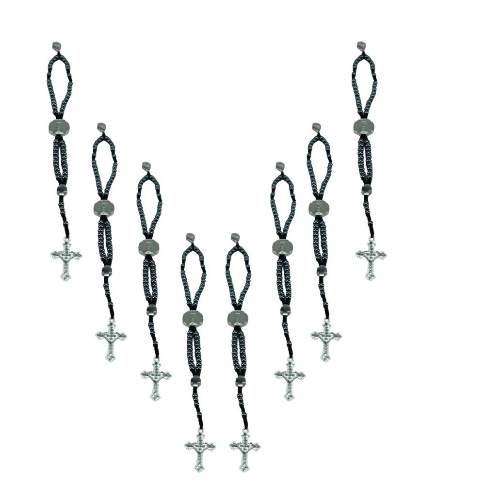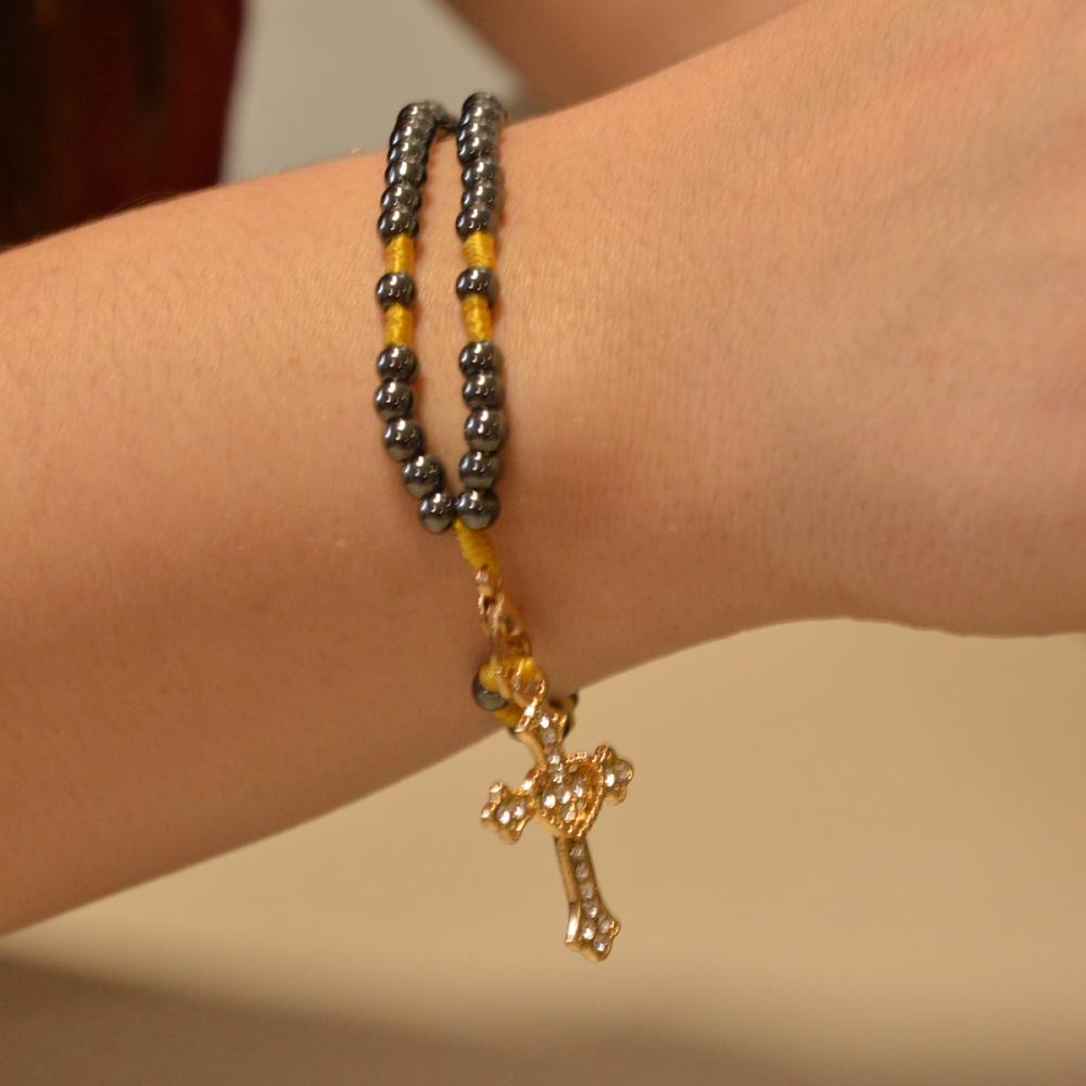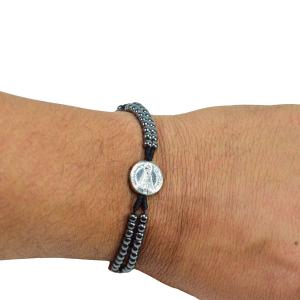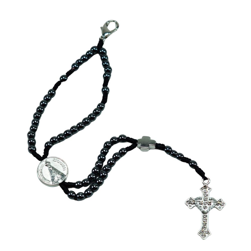 Lindo Terço de Pulso com contas pequenas em hematita feito em cordão super resistente e medalhas de Nossa Senhora Aparecida.